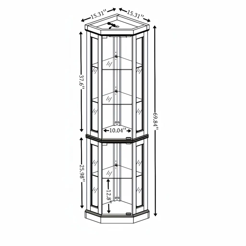 Fontoi Corner Curio Cabinet, Corner Display Cabinet, Glass Display With Adjustable Glass Shelves For Collection, Oak, 15.31"*69.84"*15.31"