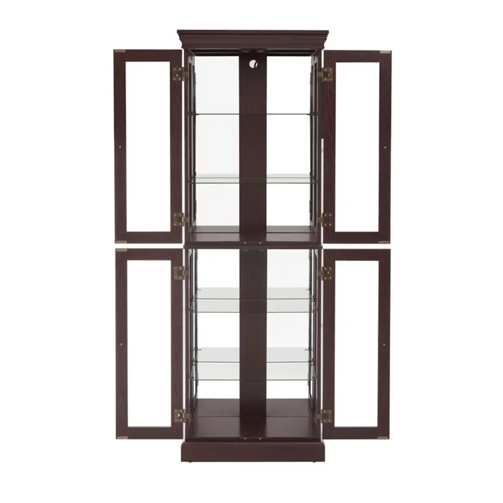 Fontoi Curio Display Cabinet, Corner Display Cabinet, Glass Storage Display With Adjustable Shelves For Collection, Cherry, 12.2"*71.26"*24.21"