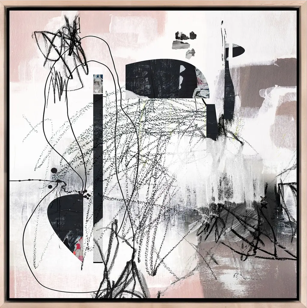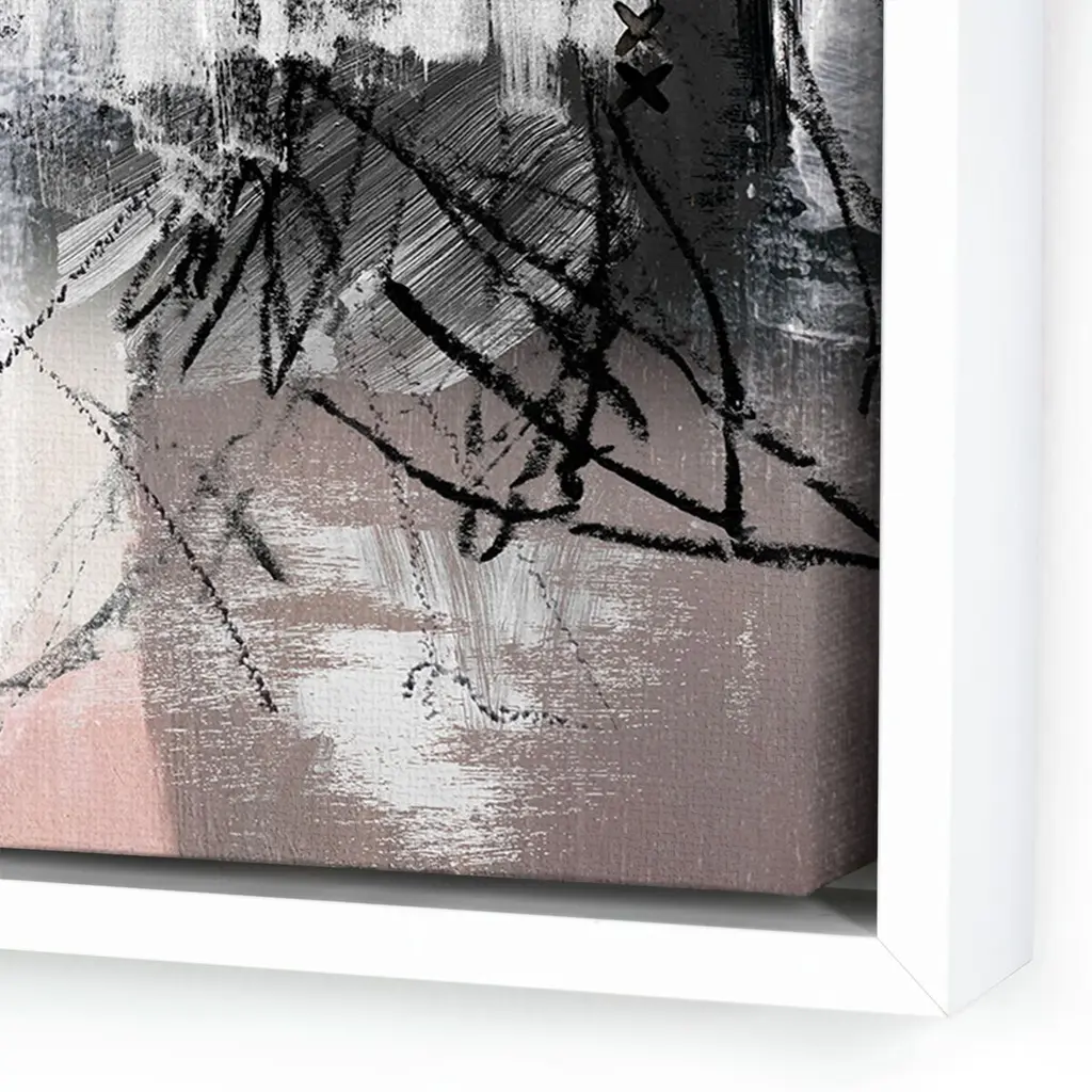 Swaths of pink add warmth to the intensity of this otherwise black-and-white abstract work. Printed on canvas, it arrives framed and ready to hang.