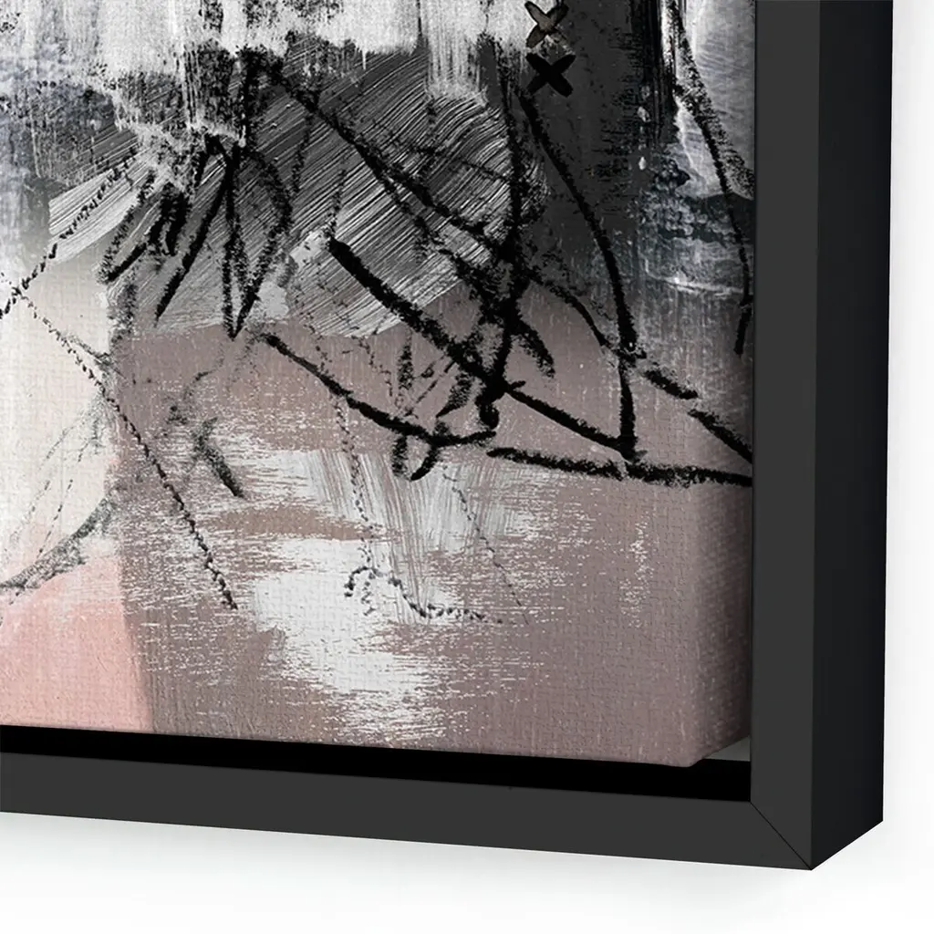Swaths of pink add warmth to the intensity of this otherwise black-and-white abstract work. Printed on canvas, it arrives framed and ready to hang.
