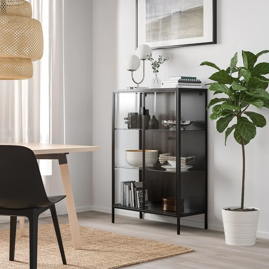 RUDSTA Glass-door cabinet - anthracite 31 1/2x14 5/8x47 1/4 ". Enjoy a personal cabinet of memories – place the things you love the most on the shelves and use magnets to fix photos, drawings and other cherished things to the cabinet's back panel.