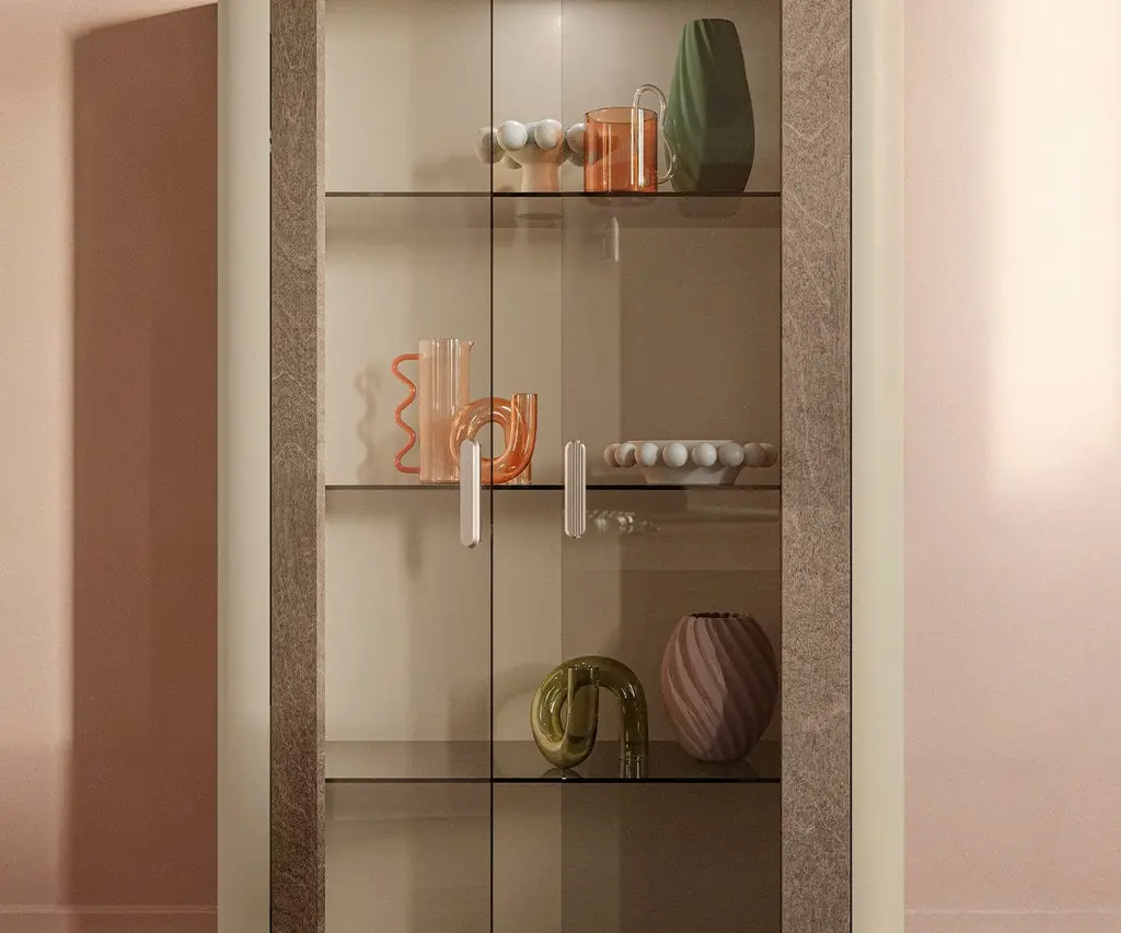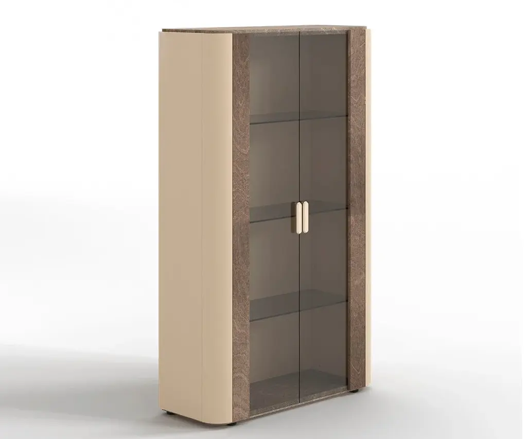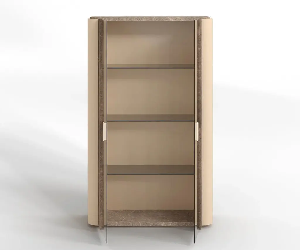 Elegant inlays and softly rounded edges give the Sancia Curio Cabinet a distinct, contemporary style, beautifully anchored by a warm brown finish. Glass doors and spacious shelving offer room to showcase or store your essentials, while the sophisticated aesthetic complements a variety of decor styles. Pair it with other pieces in the Sancia Collection for a coordinated lookand enjoy added peace of mind with built-in anti-tip hardware.