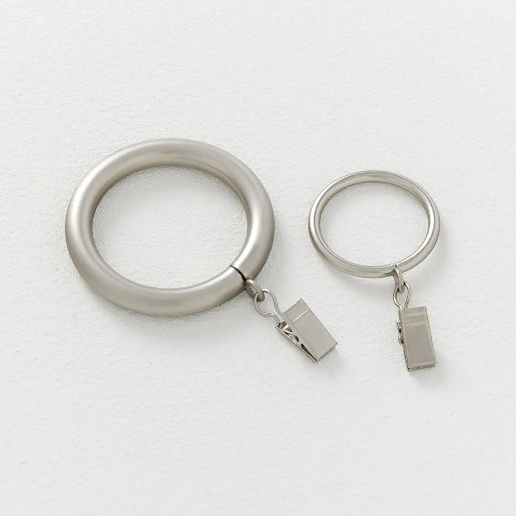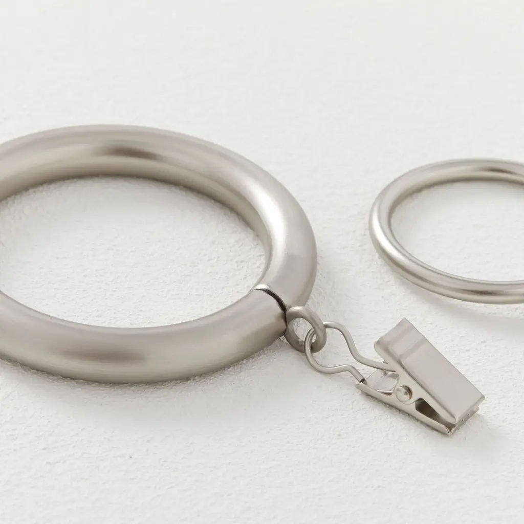 These versatile metal rings come with removable clips that can be used on curtains with or without drapery hooks for easy hanging.