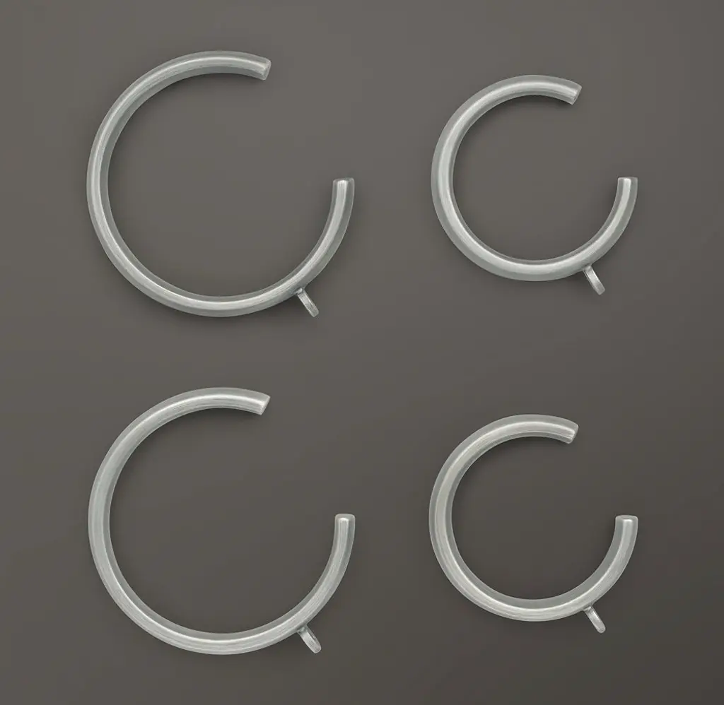 When used in combination with our Estate C-Loop Ring Center Bracket, our Estate C-Loop Drapery Rings allow drapery to pass over support brackets so that it can traverse the entire span of the rod.