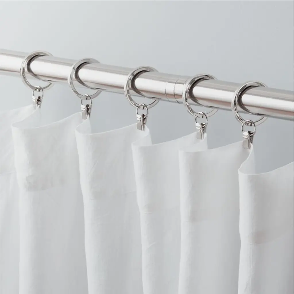 Mimic the high-end look of drapery rings even if your curtain panel doesn't have included hooks. Set of nine polished nickel clip rings easily attach to curtain panels and slide back and forth along the rod. CB2 exclusive.
