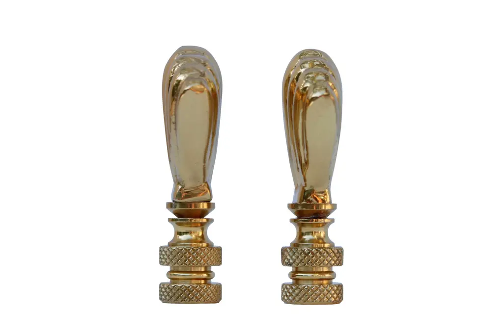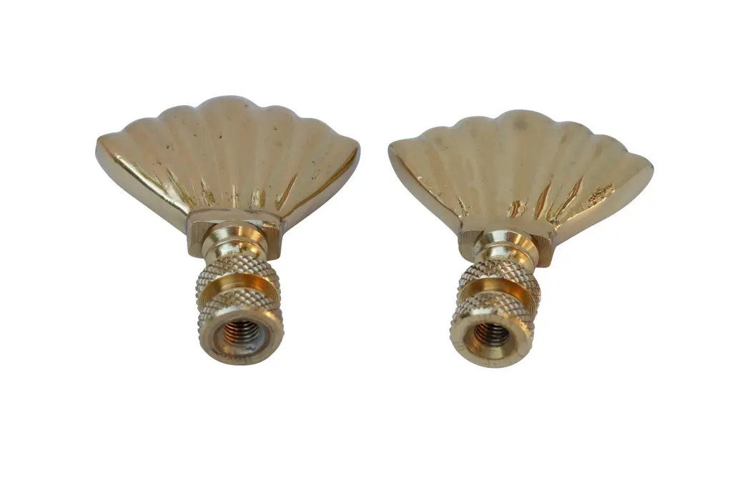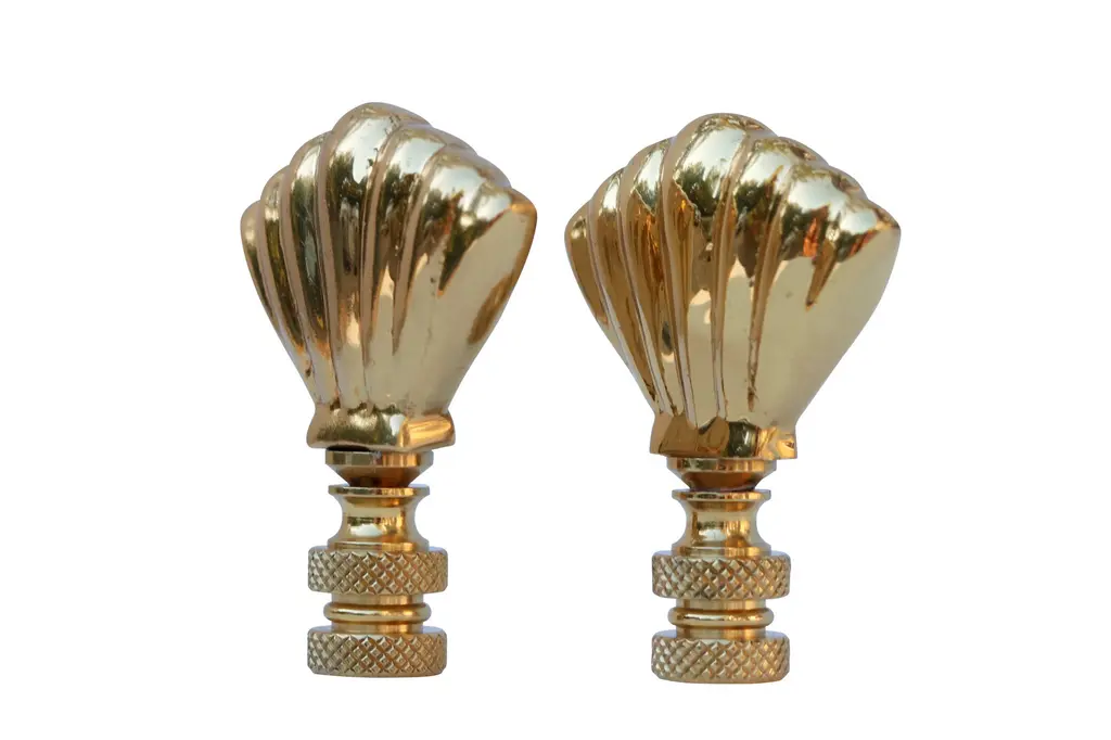 A pair of brass shell lamp finials. Fits a standard size lamp harp. Dimensions per finial.