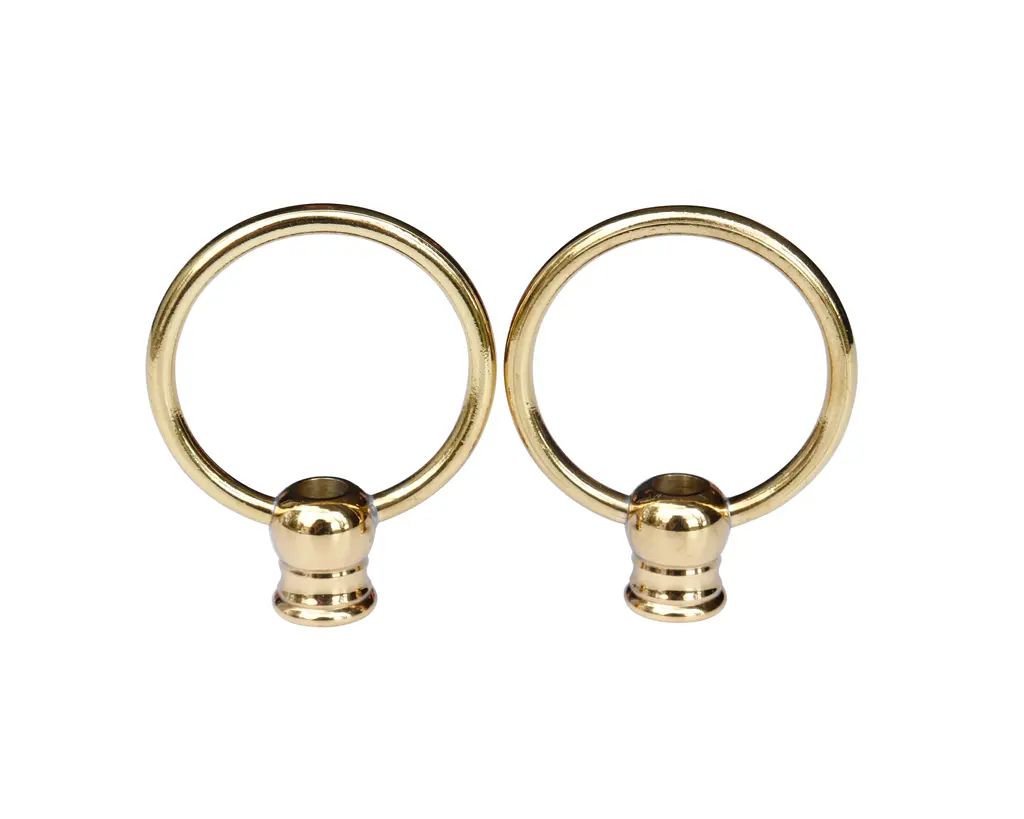 A pair of modern brass loop lamp finials. Fits a standard-sized lamp harp. Dimensions per finial.