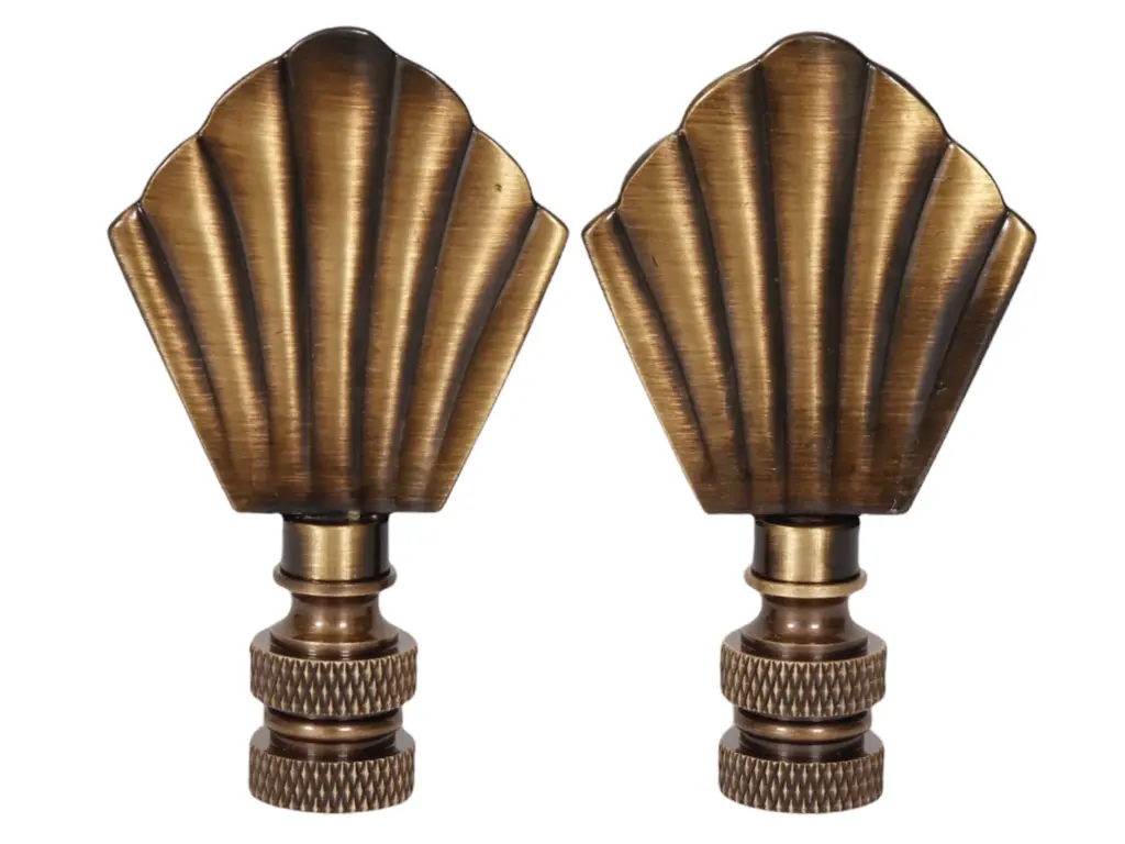 Scallop Shell Brass Lamp Finials - Pair