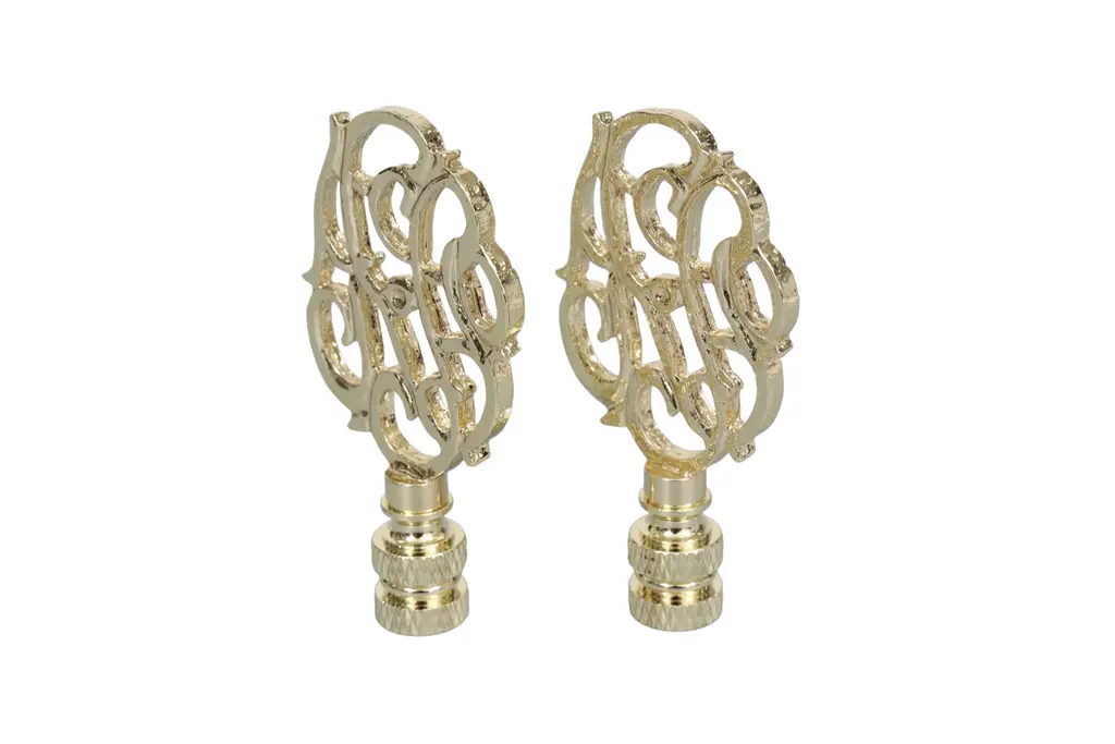 Scrolled Vine Brass Lamp Finials, A Pair