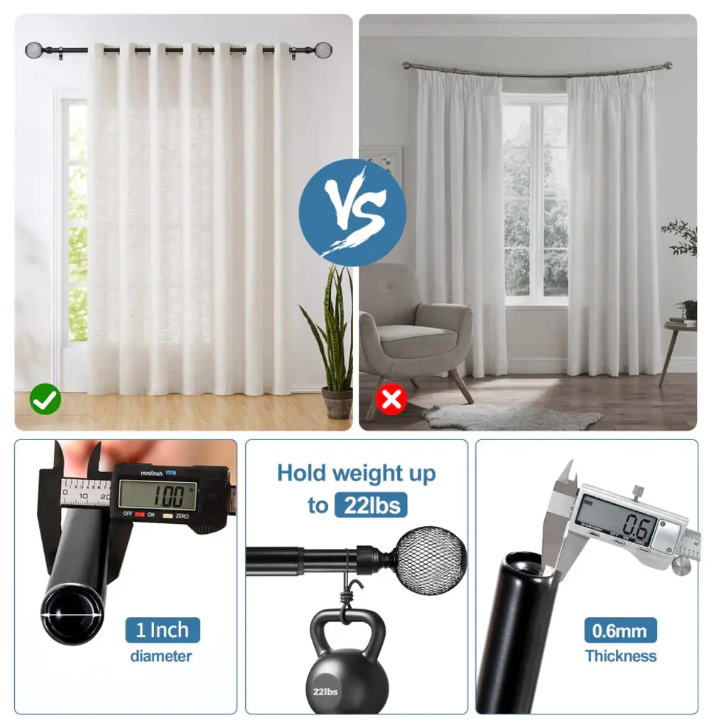 1" Columbia Adjustable Curtain Rod, Black, 48"-84"