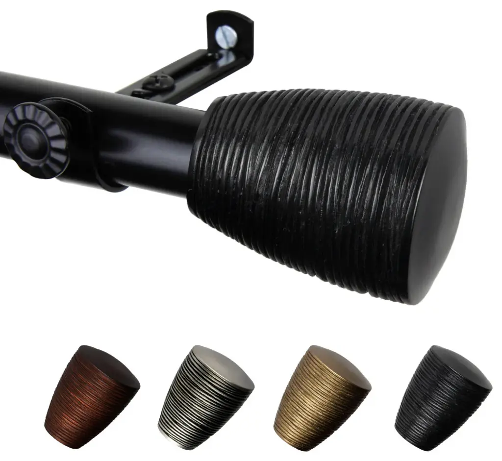 This rod set includes one rod, one set of two finials, and brackets in a pewter finish.The adjustable curtain rod measures 1" diameter and comes with polyresin finials. The finials measure 3 1/8" long and 2 7/8" in diameter. The rod extends from 84" to 120".Mounting hardware included for easy installation.Adjustable brackets measure 5" to 6 3/4" long, 4 1/2" to center of bracket cup; 1 3/4" wall mount span. 2 brackets included with 28"-48"; 3 brackets included with 48"-84" and 84"-120" lengths.