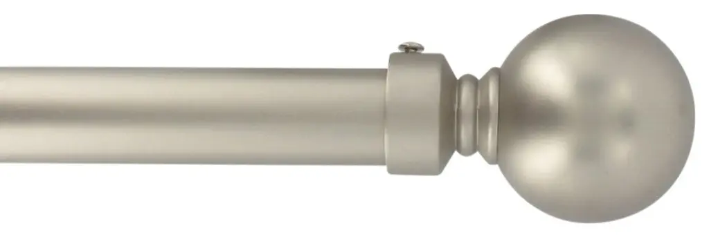 This rod set includes one rod, one set of two finials, and brackets in a pewter finish.The adjustable curtain rod measures 1" diameter and comes with polyresin finials. The finials measure 3 3/8" long and 2 1/4" in diameter. The rod extends from 28" to 48".Mounting hardware included for easy installation.Adjustable brackets measure 5" to 6 3/4" long, 4 1/2" to center of bracket cup; 1 3/4" wall mount span. 2 brackets included with 28"-48"; 3 brackets included with 48"-84" and 84"-120" lengths.