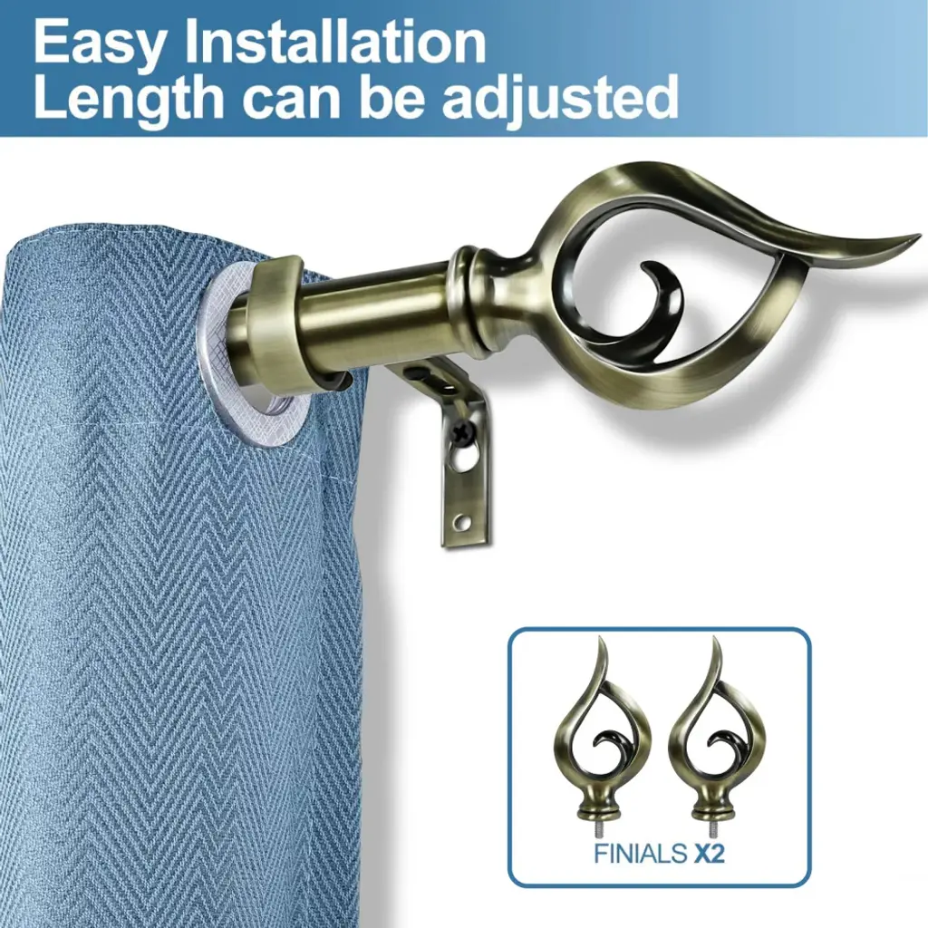 1" Flame Drapery Curtain Rod, Antique Brass, 28"-48"