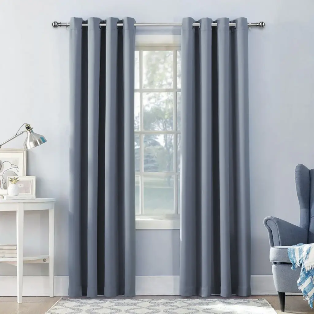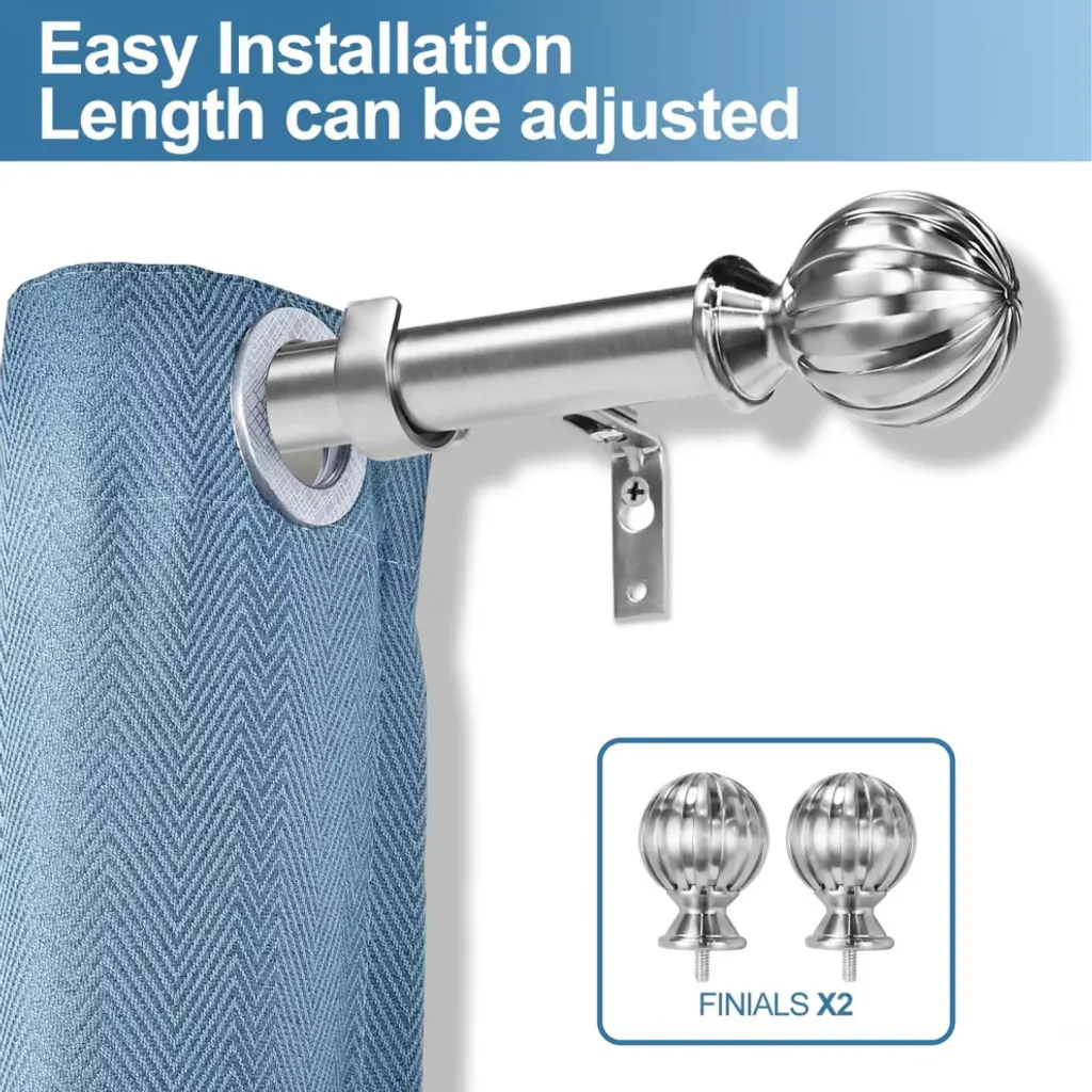 1" Fluted Ball Drapery Curtain Rod, Brushed Steel, 48"-84"