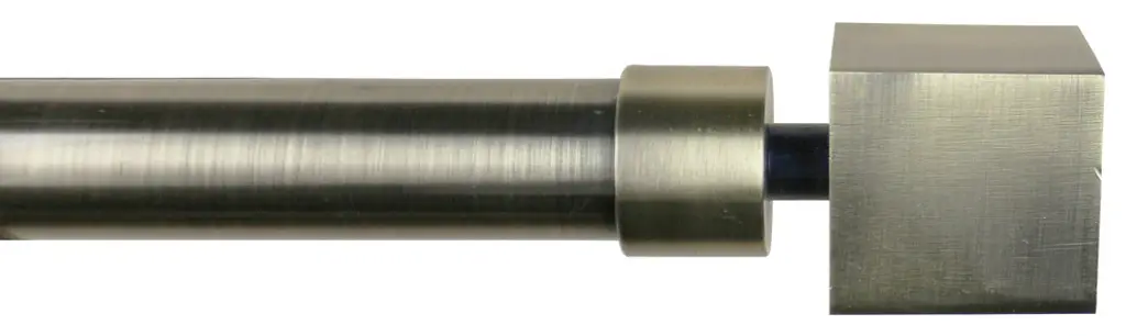 The rod set includes 1 rod, 1 set of two finials, and brackets in a brushed steel finish.The adjustable curtain rod measures 1" diameter and comes with metal finials. The finials measures 3 1/2" long and 1 1/2" in diameter at the widest point. The rod extends from 48" to 84".Available in 8 finishes: Black, Glossy White, Bronze, Brushed Steel, Antique Brass, Pewter, French White, and Satin GoldMounting hardware included for easy installation.Adjustable brackets measure 5" to 6 3/4" long, 4 1/2" to center of bracket cup; 1 3/4" wall mount span. 2 brackets included with 28"-48"; 3 brackets included with 48"-84" and 84"-120" lengths.