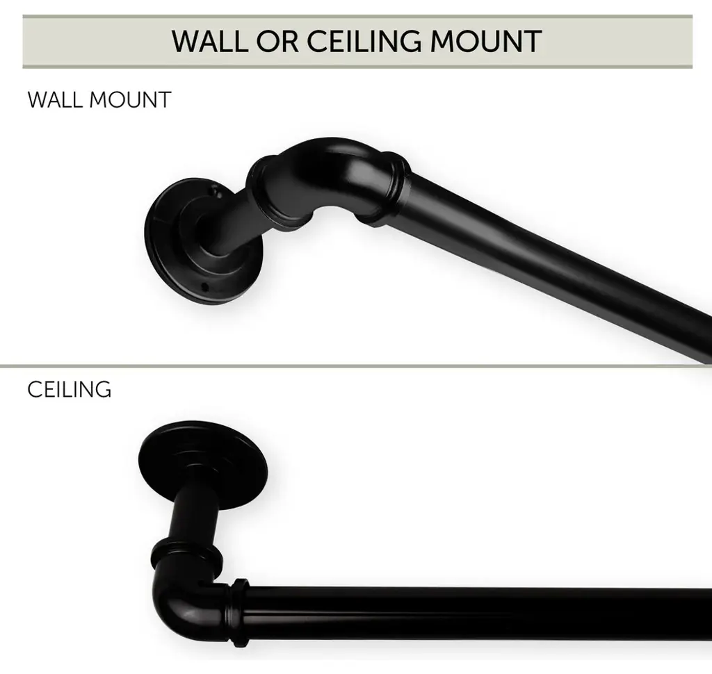 1" Pipe Bay Window Curtain Rod, Black, 87"-160"