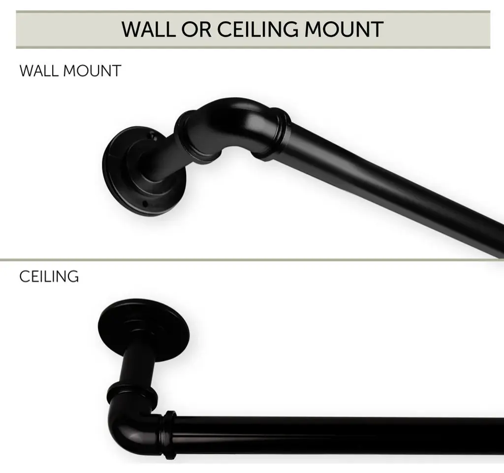 Effortlessly cover the entire rod with your favorite draperies using our new 1 in. modern pipe design blackout rod. This style features a wraparound design that lets your curtain cover the entire rod, perfect for room darkening. This industrial looking curtain rod is made from high quality steel and provides a sense of privacy not found with standard curtain rods. This Blackout Style rod blocks out light, reduces noise and can help save energy.