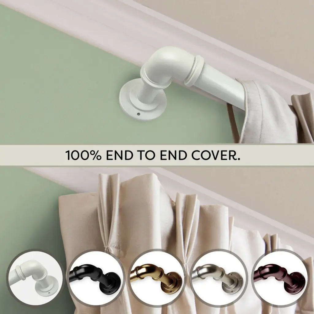 Effortlessly cover the entire rod with your favorite draperies using our new 1 in. modern pipe design blackout rod. This style features a wraparound design that lets your curtain cover the entire rod, perfect for room darkening. This industrial looking curtain rod is made from high quality steel and provides a sense of privacy not found with standard curtain rods. This Blackout Style rod blocks out light, reduces noise and can help save energy.