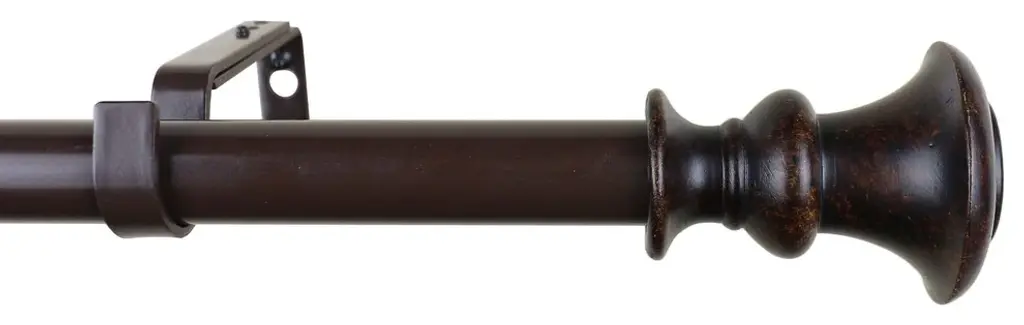 The rod set includes 1 rod, 1 set of two finials, and brackets in a renaissance gold finish.The adjustable curtain rod measures 1" diameter and comes with decorative polyresin finials. The finials measure 2 5/8" long and 2 3/8" in diameter. The rod extends from 28" to 48".Available in 3 finishes: Gilded French White, Burnt Gold, and Renaissance Gold.Mounting hardware included for easy installation.Adjustable brackets measure 5" to 6 3/4" long, 4 1/2" to center of bracket cup; 1 3/4" wall mount span. 2 brackets included with 28"-48"; 3 brackets included with 48"-84" and 84"-120" lengths.