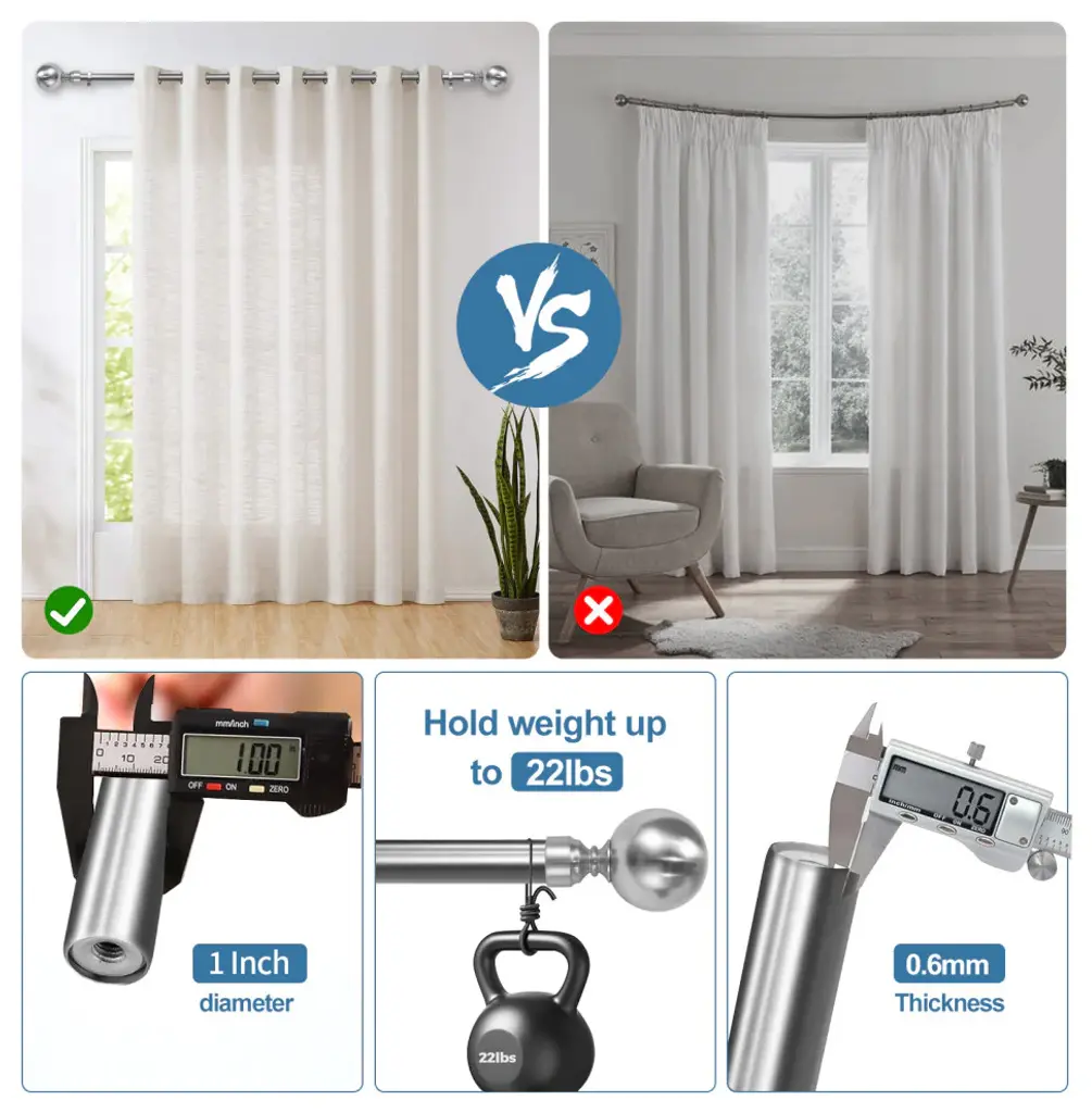 1" Steel Ball Drapery Curtain Rod, Brushed Steel, 48"-84"