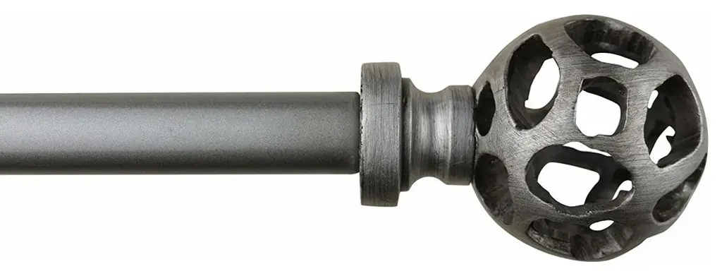 The rod set includes 1 rod, 1 set of two finials, and brackets in a bronze finish.The adjustable curtain rod measures 1" diameter and comes with decorative polyresin finials. The finials measure 3 5/8" long and 2 5/8" in diameter. The rod extends from 28" to 48".Available in 4 finishes: Renaissance Gold, Burnt Gold, Pewter, and Mahogany.Mounting hardware included for easy installation.Adjustable brackets measure 5" to 6 3/4" long, 4 1/2" to center of bracket cup; 1 3/4" wall mount span. 2 brackets included with 28"-48"; 3 brackets included with 48"-84" and 84"-120" lengths.