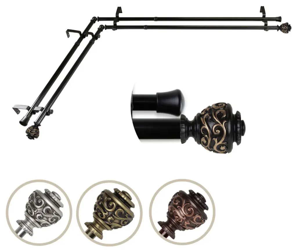 13/16" Bay Window Double Curtain Rod 20"-36", 38"-72" - Black