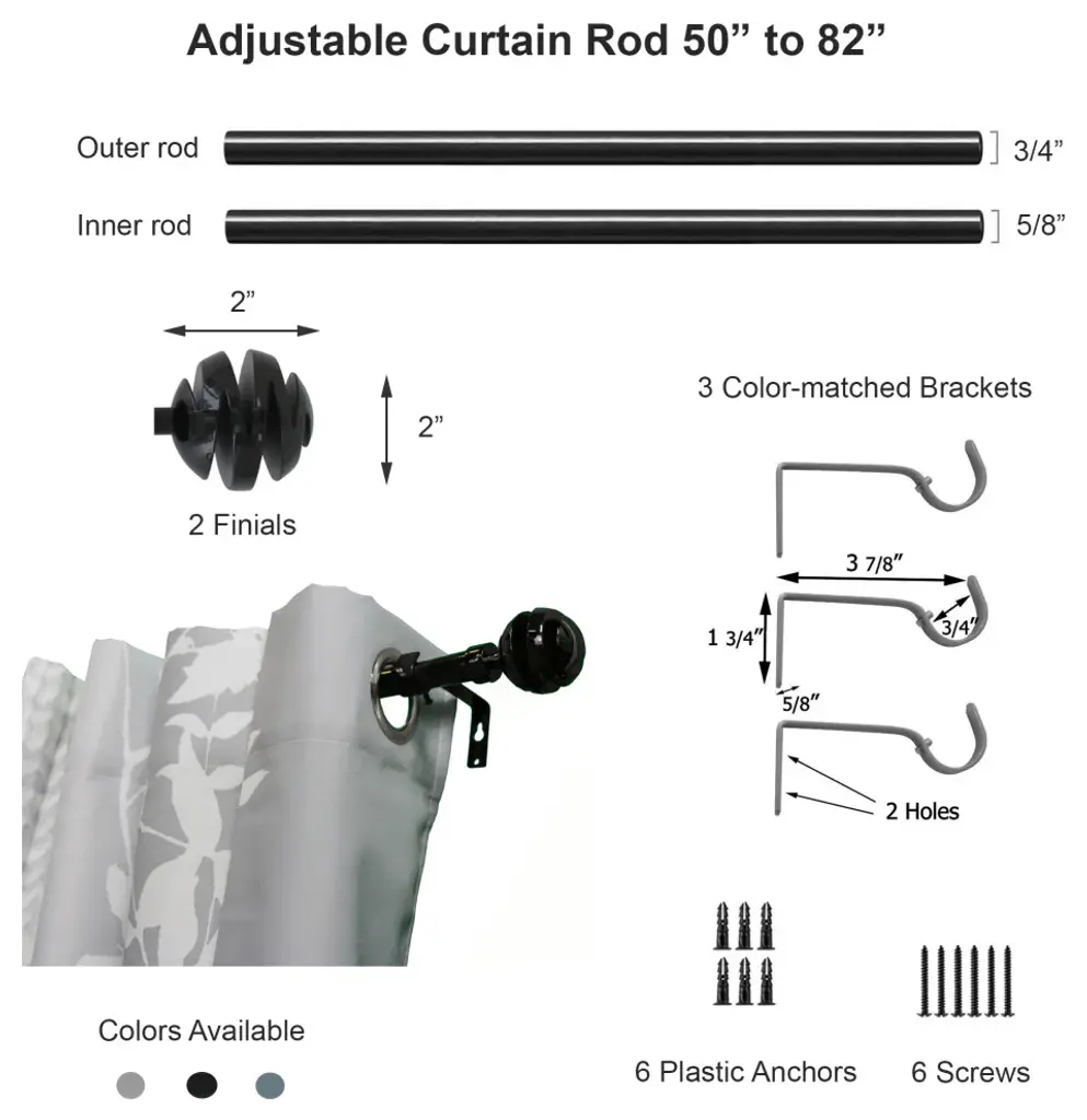 • EASILY EXTENDS: You can easily adjust the width of your curtain rod to your window''s dimensions with this extendable curtain rod set from 50" to 82" L. The set includes two 3/4" D telescopic steel tubes. Sold by 2 pack• SET OF 2 RODS: Sold by two sets of rods, to let you matching two window treatments in the same room and give them an instant update. These extendable curtain pole sets include a complete mounting hardware to allow an easy installation• FINIALS: From the Glossed range collection, this Villalouise curtain rod set is accented with spherical finials for a stylish geometric look• STURDY: Made of sturdy steel construction for a sturdy long-lasting use. 3 color-matched brackets are supplied. By using one bracket in the middle of the rod, you avoid any bend • LARGE COLLECTION: Collection Villalouise. 3 colors available: shiny taupe, shiny dark grey or shiny black. One other design available in the Glossed range: New LookChoosing the right kind of curtain rod for your space is essential as it instantly uplifts a room, giving it a classy or modern finish. Whether you want a rustic look or want to give your room a romantic feel to it, the right curtain rod is sure to do the trick. At Homdkor, find a collection of curtain rods in a range of styles and colors and add a sophisticated look to your window treatments in seconds with these extendable curtain pole sets. All our sets include two telescopic steel tubes, two decorative rod finials, three brackets and one complete mounting hardware. Homdkor offers a variety of tube diameter, from 5/8 or 3/4 to 1 and a rod extension from 50 to 82 Inches long to fit a large range of windows sizes. Add a subtle touch of texture and style with a variety of curtain rods like brushed-finish rods, glossed-finish rods or nickel curtain rods, or colors from an ivory-brushed gold or a light grey to a graphite black. This extendable curtain rod can be installed on the window in minutes in any bedroom, living room, kitchen or bathroom. Its sturdy steel construction as well as the 3 color-matched brackets are specially designed not to bend and allow durable use.Also available in extendable double curtain pole to make it easy to layer curtains and makes your living space cozy.