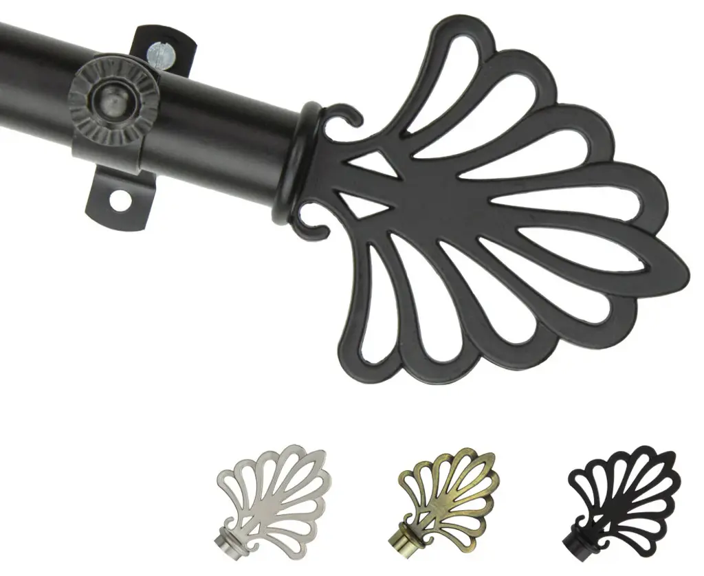 Add a touch of the great outdoors with our fish curtain rods.This adjustable 3/4" diameter curtain rod has a bronze finish. The rod adjusts from 48" to 84". Three matching brackets included. Brackets adjust from 4" to 5 1/2" deep.The jumping fish finial has a bronze finish with gold highlights and measures 3" tall and 3" across. Finial is made from polyresin.The minimum suggested curtain ring size to use with this rod is 1".