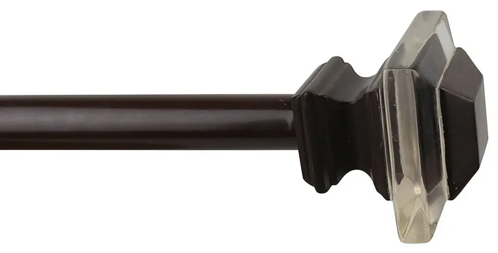 The rod set includes 1 rod, 1 set of two finials, and brackets in a renaissance gold finish.The adjustable curtain rod measures 3/4" diameter and comes with polyresin and acrylic finials. The finials measure 1 3/4" square and 1 7/8" long. The rod extends from 28" to 48???.Available in 3 finishes: Renaissance Gold, Pewter, and Bronze. Mounting hardware included for easy installation.Standard matching brackets extend from 4" to 5 1/2" deep. Two brackets come with 28"-48" rod; three brackets come with 48"-84" and 84"-120" rods.