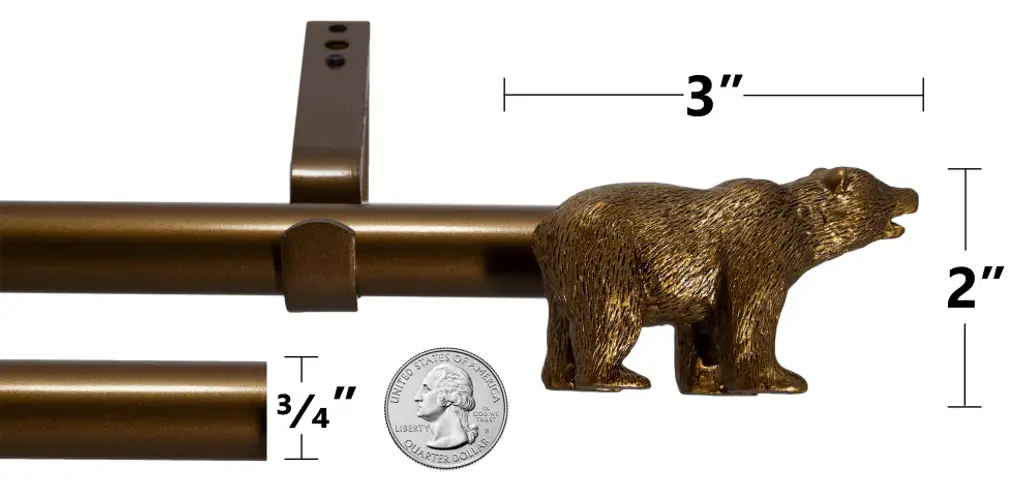 [ DECORATIVE WINDOW TREATMENT ] Unique bear shaped finials make it easy to bring the spirit of a cozy cabin into any room. Ornament a window, accent an entryway, or even hang a drapery with ease! [ FLEXIBLE DESIGN ] Urbanest"™s telescoping 3/4"� diameter metal curtain rod extends from X to X inches long accommodating most window sizes. Ideal for kitchens, dining rooms, bedrooms, living rooms or home offices.[ EASY SETUP ] Mounts curtains, curtain rings, or panels easily to fit any occasion. Required mounting hardware included: two (2) brackets• , four (4) drywall anchors, and four (4) screws. (Rod, two (2) finials, and installation instructions are also included) • one additional center support bracket, extra screws and drywall anchors included for 48"�-84"� and 84"�-120"� size variations. [ SIZING & DIMENSIONS ] The Urbanest Bear curtain rod is available in three adjustable sizes: 28"�-48"�, 48"�-84"�, and 84"�-120"�. Brackets extend from 4"� to 5.75"� away from the wall. The heavy duty rod supports up to 30 lbs. 1"� inner diameter minimum suggested curtain ring size. [ COLOR VARIETY ] Available in a variety of designer colors: Oil Rubbed Bronze (ORB), Renaissance Gold, Pewter and Cottage.