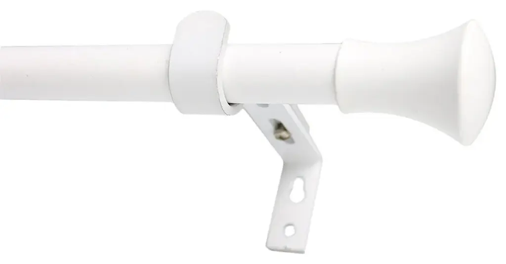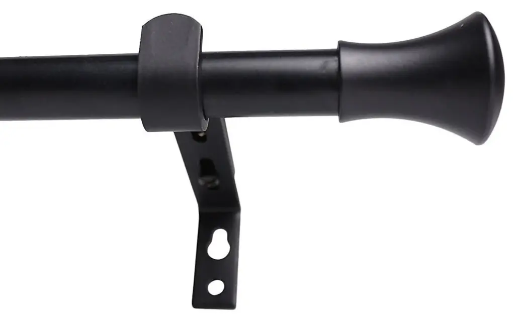 This set includes one 28"-48" adjustable rod, two finials, two matching brackets, and mounting hardware.The rod has a black finish, with tapered finials in black.The diameter of the rod is 5/8". Uses 3/4" or larger curtain rings (sold separately).The brackets adjust from 4" to 5 1/2". The finials measure 1 5/8" long and 1 1/4" wide.Available in 7 finishes: Black, Glossy White, Bronze, Brushed Steel, Antique Brass, Pewter, and Antique Gold.