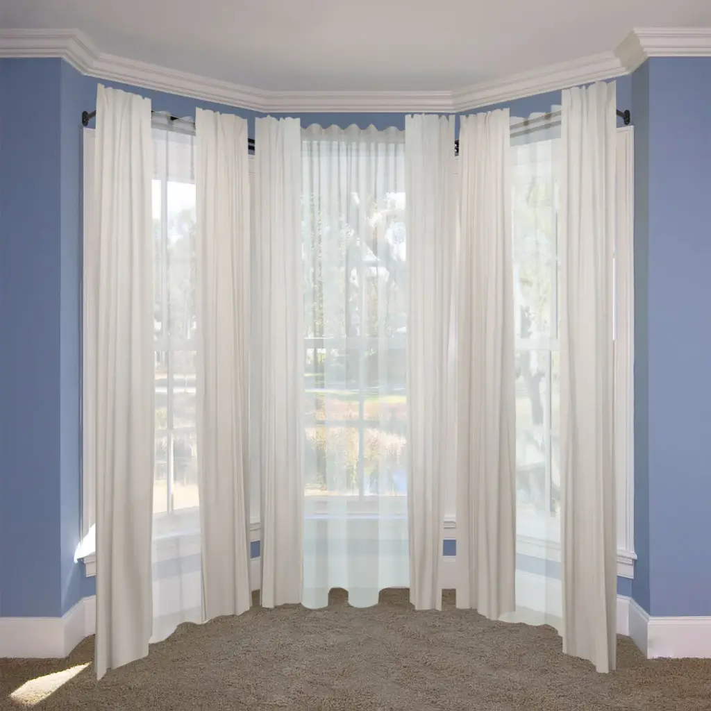 Central Design Products presents the perfect enhancement to your window treatment with high-end quality Blackout Double Bay Curtain Rods. Effortlessly darken a room with these Black Out Bay Curtain Rods. Designed to add a modern touch for those tricky bay windows. Includes 6 curtain rods of 5/8" diameter, 2 end brackets, 4 center support brackets, 4 corner connectors, and mounting hardware. Projection: 6.125" Clearance: 3" Rod Diameter: 5/8" Material: Steel Color: Cocoa