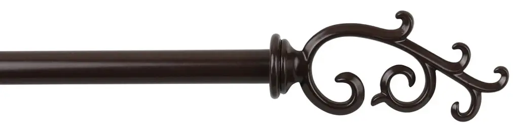 The rod set includes 1 rod, 1 set of two finials, and brackets in an antique gold finish.The adjustable curtain rod measures 5/8" diameter and comes with decorative finials.The finials measure 4 1/2" long and 2" across at the widest part.The rod extends from 84" to 120".Available in 5 finishes: Black, Glossy White, Bronze, Pewter, and Antique Gold.Mounting hardware included for easy installation.