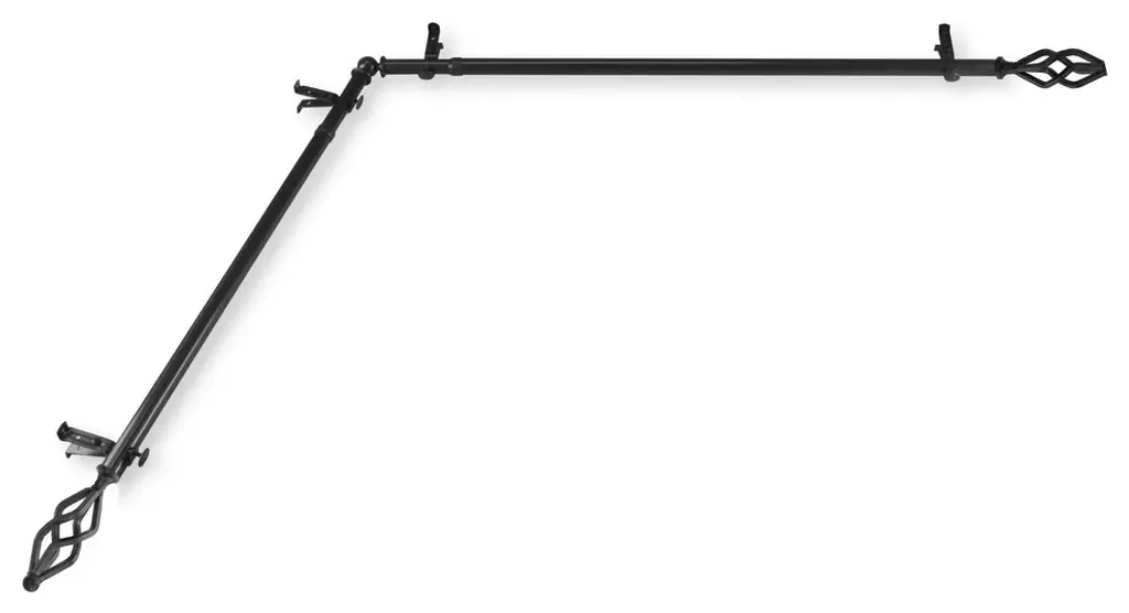 Easily and effortlessly decorate your corner windows with curtains. 1 set of two 13/16" diameter curtain rods attach via corner ball connector that allows for nearly 360 of rotation. These high quality steel rods are accented with decorative finial end pieces.Includes: two 13/16" diameter rods, 2 finials, 1 corner connectors, and mounting hardware.Finial Measurement: 2-1/4" W X 2-1/8" H x 2-1/8" DBracket Projection: 2.875 inchInstallation instructions includedSteel Rod and Resin Finial