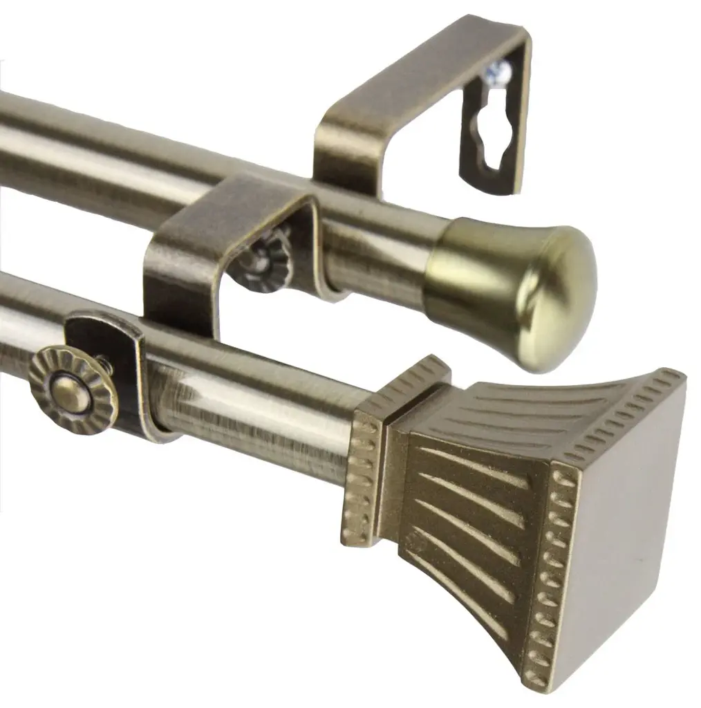 Aldo 13/16 Inch Double Corner Window Curtain Rod, Antique Brass, 28-48"