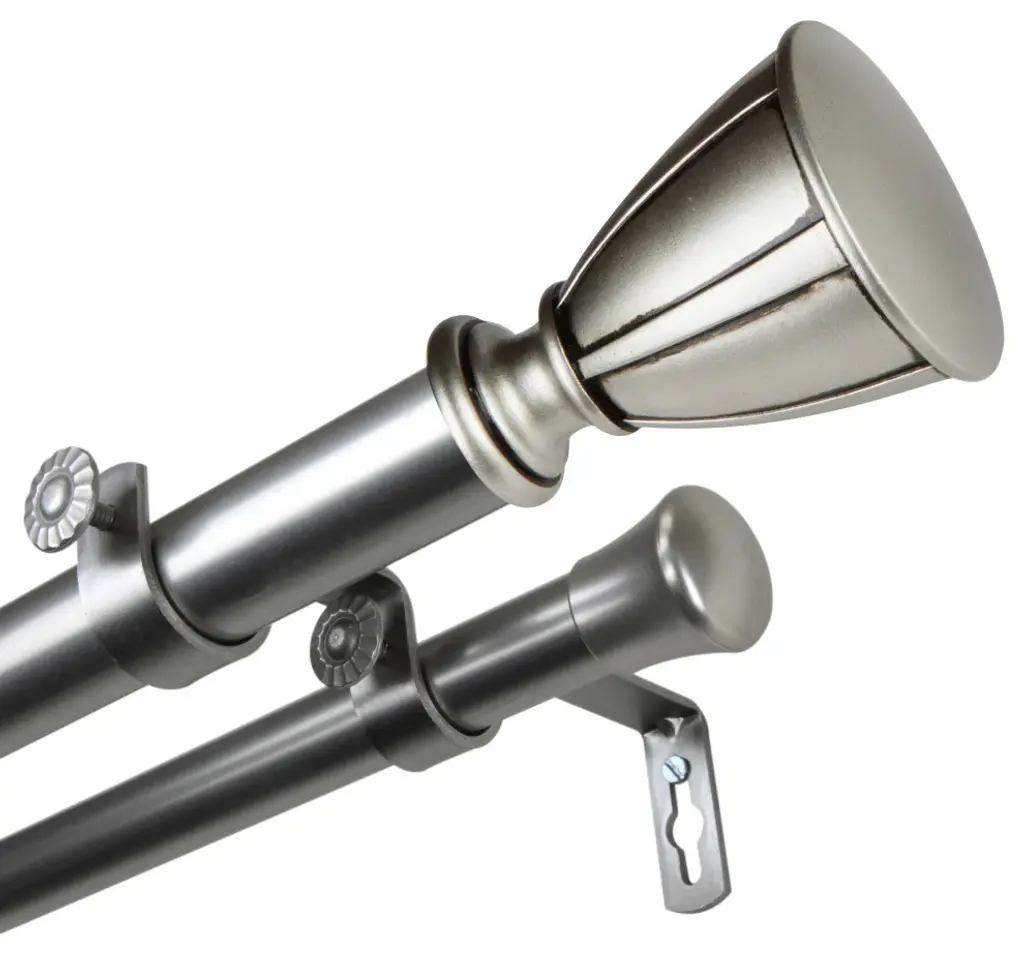 Central Design Products is thrilled to present our top-of-the-line Double Curtain Rods, the ultimate addition to any window treatment. Our high-quality rods are crafted with precision to provide a sleek and modern look to your home decor. Each set includes a double curtain rod, finials, sturdy mounting brackets, and all necessary mounting hardware. The elegant color of our curtain rods adds a touch of sophistication to your space. Upgrade your window treatment with Central Design Products'' Double Curtain Rods today! Includes 1 curtain rod of 1" diameter, one curtain rod of 13/16" diameter, finials, endcaps, mounting brackets, and mounting hardware. Size: 48-84" Projection: 6.75" Front Rod Diameter: 1" / Back Rod Diameter: 13/16" Material: Steel