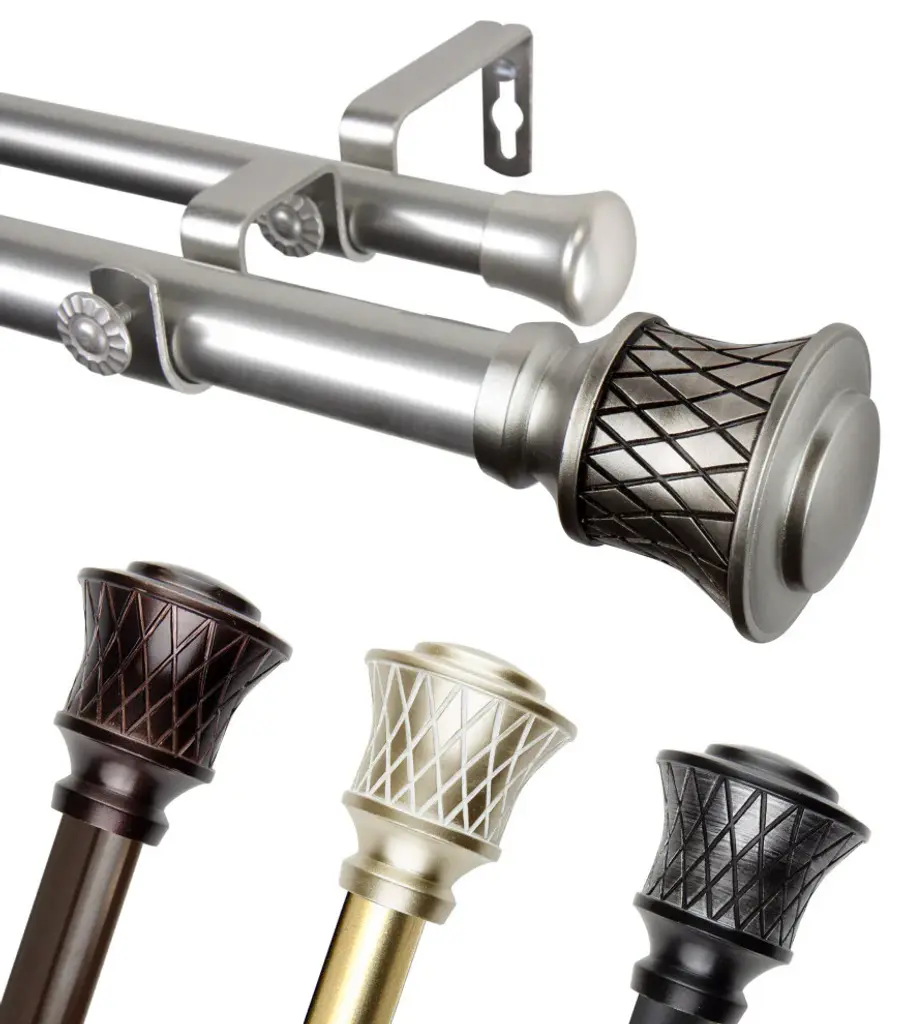 Central Design Products is thrilled to present our top-of-the-line Double Curtain Rods, the ultimate addition to any window treatment. Our high-quality rods are crafted with precision to provide a sleek and modern look to your home decor. Each set includes a double curtain rod, finials, sturdy mounting brackets, and all necessary mounting hardware. The elegant color of our curtain rods adds a touch of sophistication to your space. Upgrade your window treatment with Central Design Products'' Double Curtain Rods today! Includes 1 curtain rod of 1" diameter, one curtain rod of 13/16" diameter, finials, endcaps, mounting brackets, and mounting hardware. Size: 66-120" Projection: 6.75" Front Rod Diameter: 1" / Back Rod Diameter: 13/16" Material: Steel