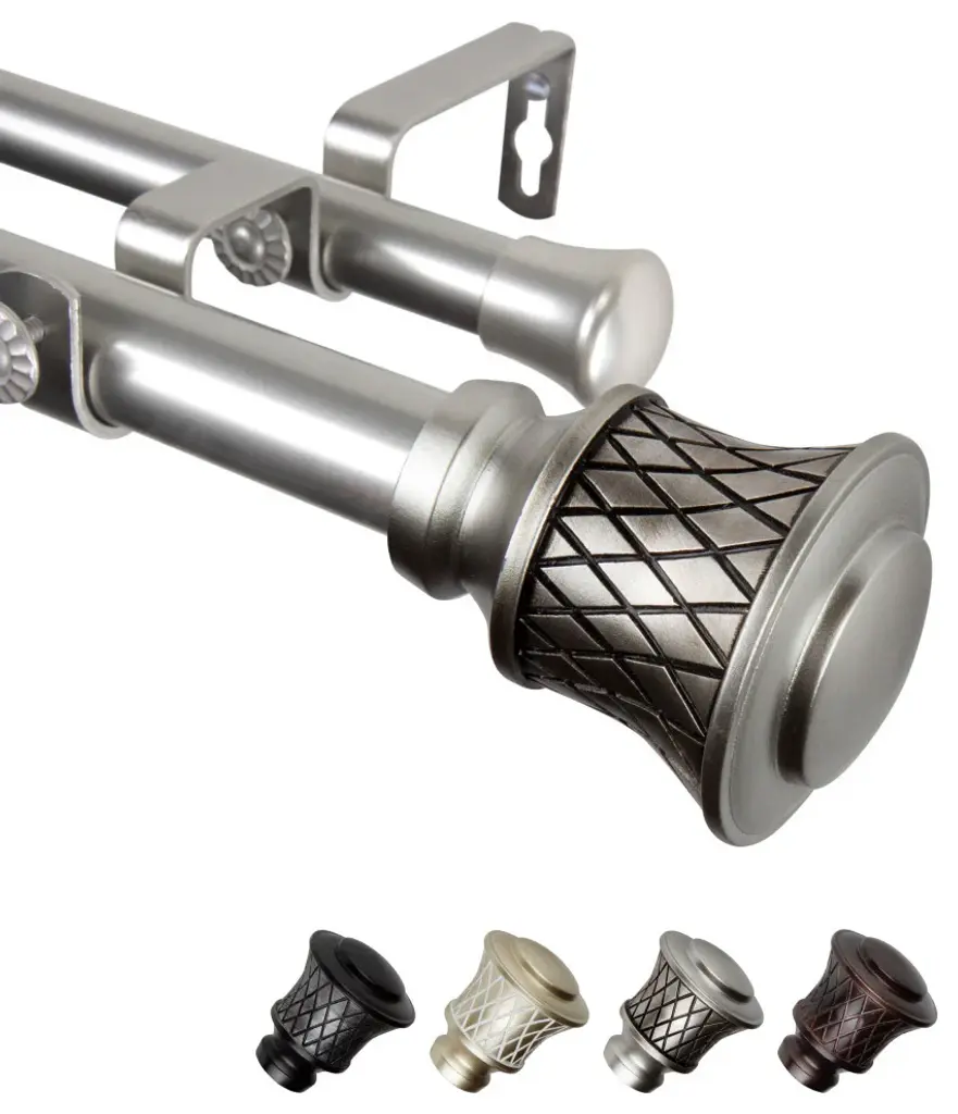 Central Design Products is thrilled to present our top-of-the-line Double Curtain Rods, the ultimate addition to any window treatment. Our high-quality rods are crafted with precision to provide a sleek and modern look to your home decor. Each set includes a double curtain rod, finials, sturdy mounting brackets, and all necessary mounting hardware. The elegant color of our curtain rods adds a touch of sophistication to your space. Upgrade your window treatment with Central Design Products'' Double Curtain Rods today! Includes 1 curtain rod of 1" diameter, one curtain rod of 13/16" diameter, finials, endcaps, mounting brackets, and mounting hardware. Size: 48-84" Projection: 6.75" Front Rod Diameter: 1" / Back Rod Diameter: 13/16" Material: Steel