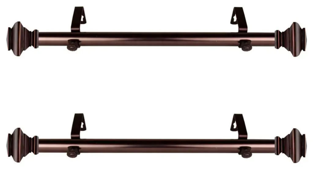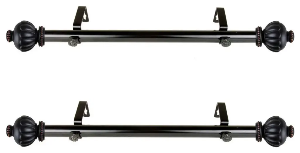 Central Design Products is thrilled to present our side curtain rods, which will add alluring style and refined touch to your window treatment and home decor. Add a nice touch to each side of your beautiful window to apply a modern and unique look in your living space. Includes two 1" diameter telescoping rods, four finials, four side mount brackets and mounting hardware. Size: 12-20" Projection: 3.625" Steel Rod
