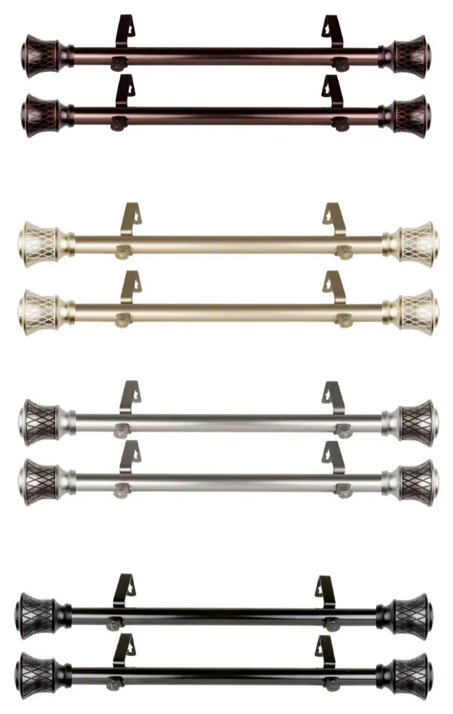 Central Design Products is thrilled to present our side curtain rods, which will add alluring style and refined touch to your window treatment and home decor. Add a nice touch to each side of your beautiful window to apply a modern and unique look in your living space. Includes two 1" diameter telescoping rods, four finials, four side mount brackets and mounting hardware. Size: 12-20" Projection: 3.625" Steel Rod