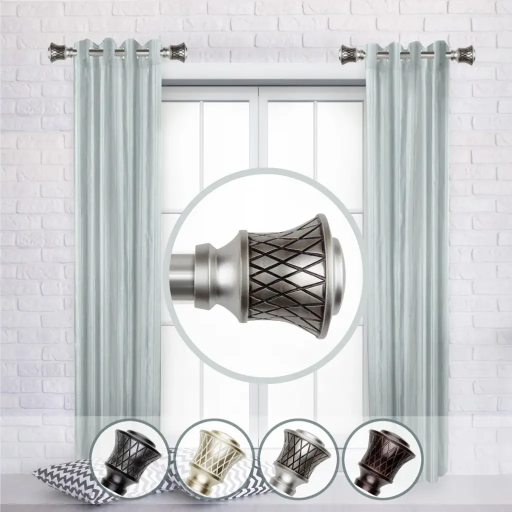 Central Design Products is thrilled to present our side curtain rods, which will add alluring style and refined touch to your window treatment and home decor. Add a nice touch to each side of your beautiful window to apply a modern and unique look in your living space. Includes two 1" diameter telescoping rods, four finials, four side mount brackets and mounting hardware. Size: 12-20" Projection: 3.625" Steel Rod