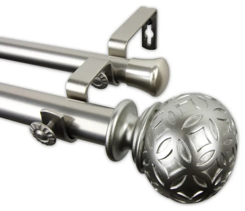 Introduce an elegant touch to your window treatment with this beautiful 13/16" diameter double curtain rod set, made of high quality steel rods. Includes 2 telescoping steel pole, mounting hardware, brackets, and 2 finials Projection: 2.875" Finial measurement: 2.5" W x 1.75" H x 1.75" D