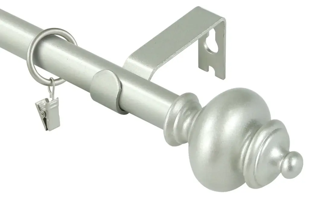 Presenting the newly designed faux wood curtain rod set. Give your window treatment a natural look with this 1 inch diameter rod, beautifully complimenting any window. Includes telescoping steel pole, mounting hardware, brackets, and 2 finials Projection: 3.625" Finial measurement: 3" W x 2.5" H x 2.5" D