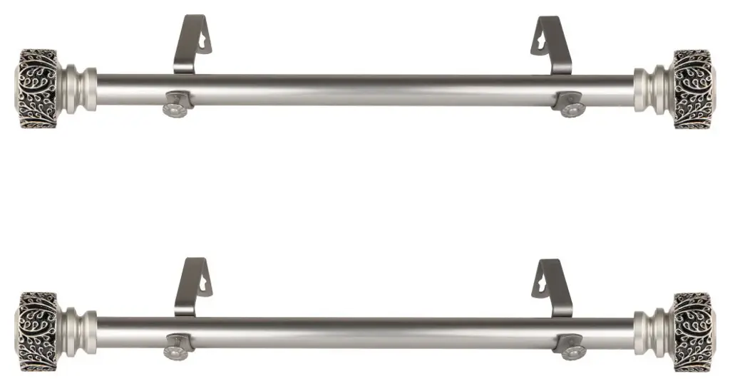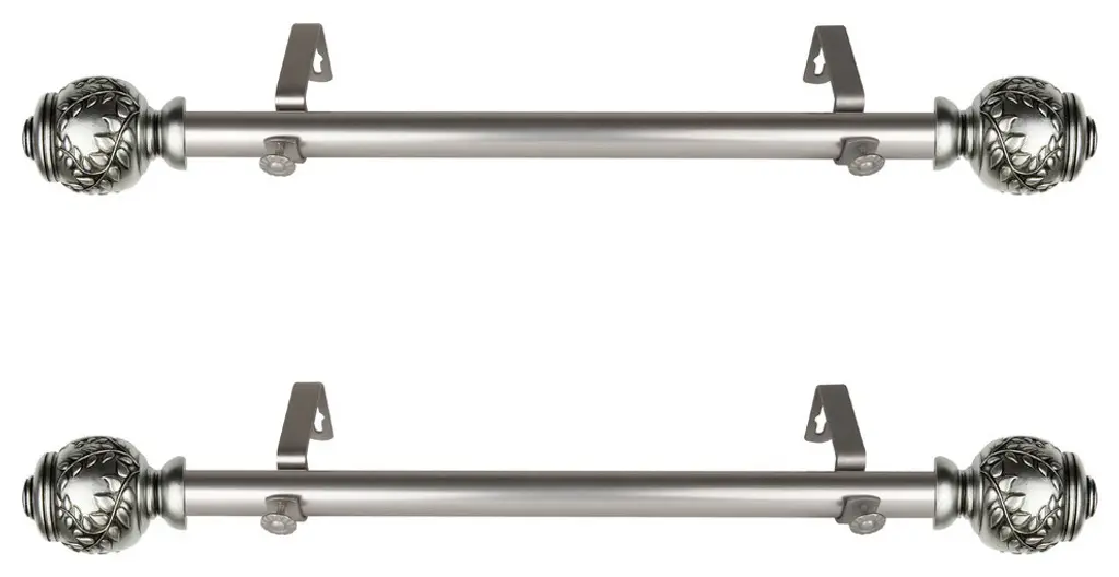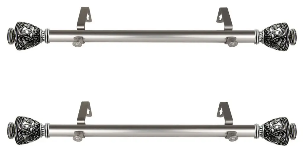 This side mount curtain rod will add alluring style and refined touch to your window treatment and home decor.Includes two 1" diameter telescoping 12-20 inches rod, four finials, four side mount brackets and mounting hardware.Finial Measurement: 2-3/4"W x 2-1/2"H x 2-1/2"D.Bracket Projection: 3.625 inches.Installation instructions included.Steel Rod and Resin Finials