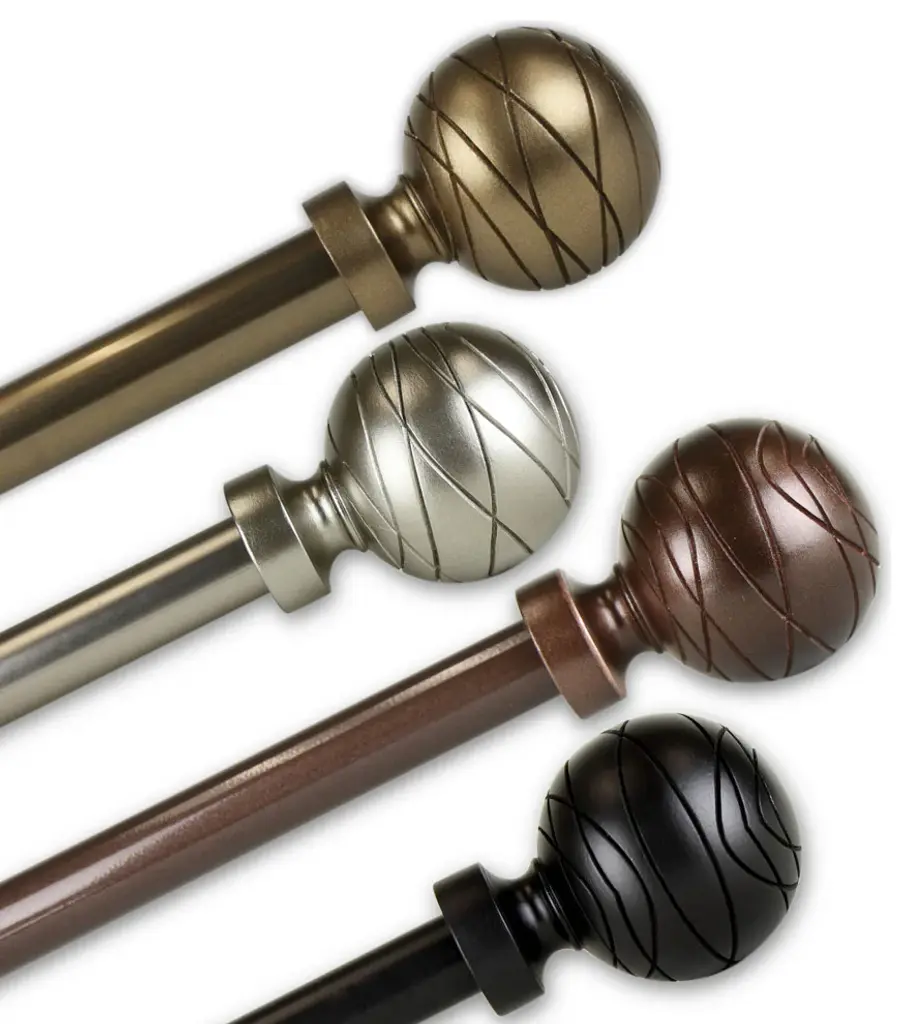 Central Design Products presents the perfect enhancement to your window treatment with high-end quality 5-Sided Double Bay Curtain Rods, Andre edition. Effortlessly style your 5 sided window treatment with these Bay Curtain Rods. Designed to add a modern touch for those tricky bay windows. Includes 10 curtain rods of 13/16" diameter, 10 support brackets, 8 corner connectors, and mounting hardware. Projection: 6.375" Clearance: 3.75" Rod Diameter: 13/16" Material: Steel Color: Antique Brass