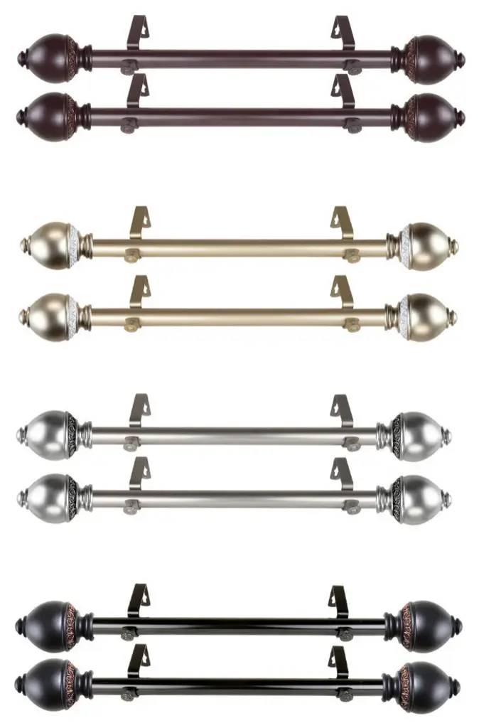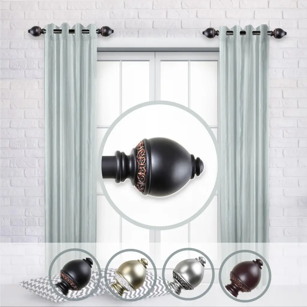 Central Design Products is thrilled to present our side curtain rods, which will add alluring style and refined touch to your window treatment and home decor. Add a nice touch to each side of your beautiful window to apply a modern and unique look in your living space. Includes two 1" diameter telescoping rods, four finials, four side mount brackets and mounting hardware. Size: 12-20" Projection: 3.625" Steel Rod