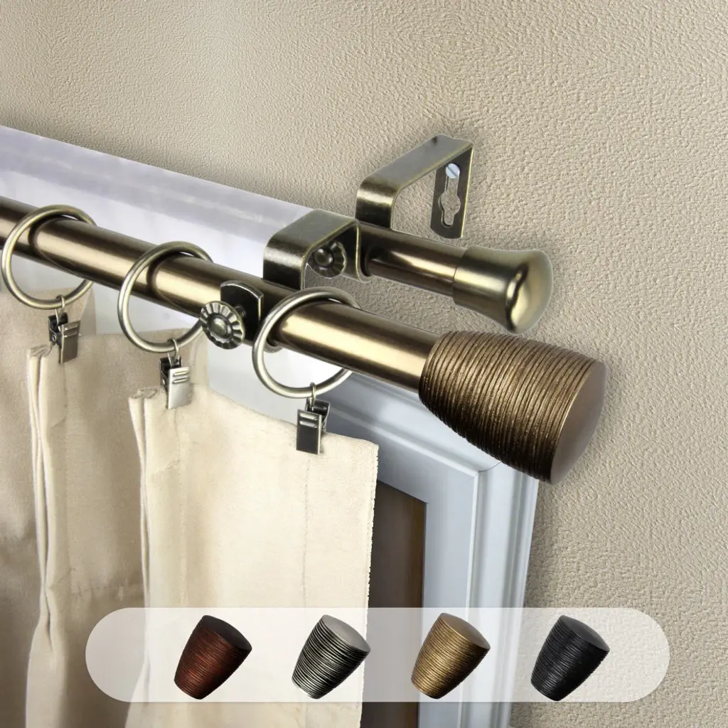 Central Design Products presents the perfect enhancement to your window treatment with high-end quality Double Curtain Rods. Designed to add a modern touch to any window. Includes 2 curtain rods of 13/16" diameter, 2 brackets, and mounting hardware. Projection: 6.375" Front rod to wall, 3.75" Back rod to wall Rod Diameter: 13/16" Material: Steel Color: Antique Brass