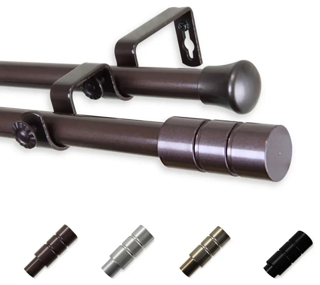 Central Design Products presents the perfect enhancement to your window treatment with high-end quality Double Curtain Rods. Designed to add a modern touch to any window. Includes 2 curtain rods of 13/16" diameter, 2 brackets, and mounting hardware. Projection: 6.375" Front rod to wall, 3.75" Back rod to wall Rod Diameter: 13/16" Material: Steel Color: Black