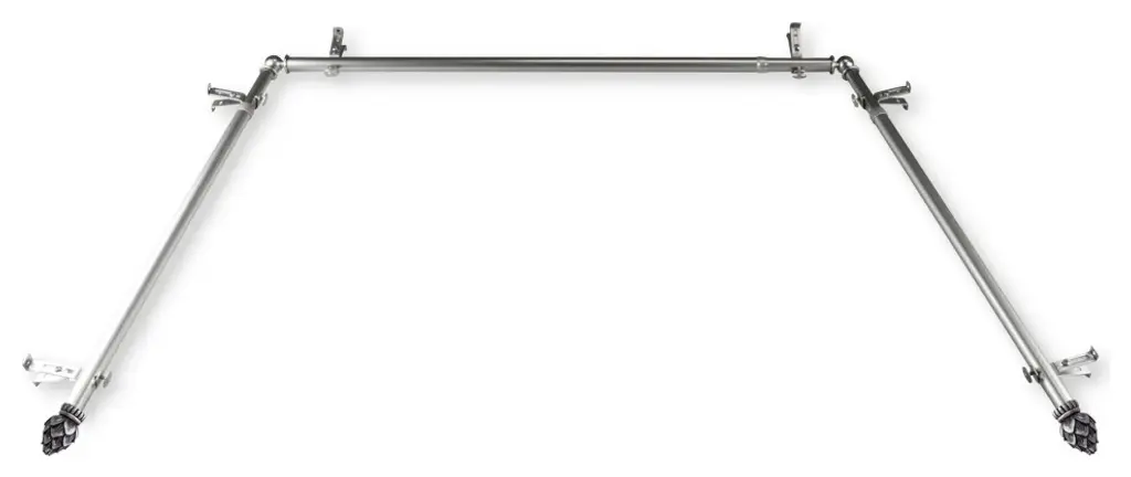 Add a sophisticated touch to your bay window treatment with a 13/16" diameter bay window curtain rod set. Made of high quality steel rods and resin finials. Includes one center rod 38-72 inches; two side rod 20-36 inches each; 6 brackets; 2 finials.Projection: 2.875"Finial measurement: 3.75" W x 3" H x 3" DRod Diameter: 13/16 inch