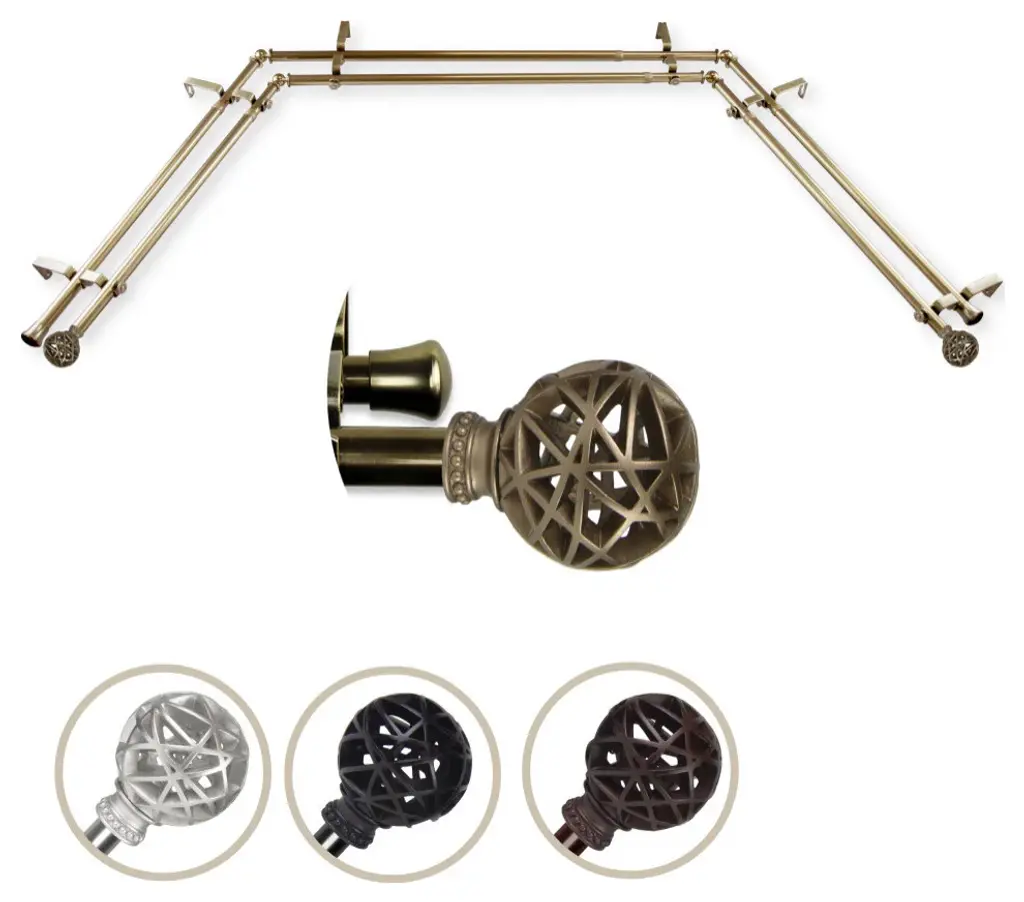 Arabella 13/16" Bay Window Double Curtain Rod, Antique Brass